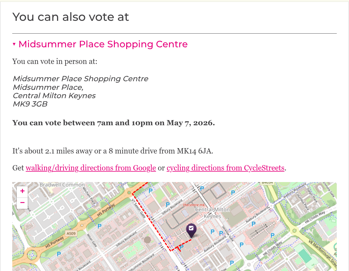 Milton Keynes: Thursday 7 May, from 7am to 10pm.