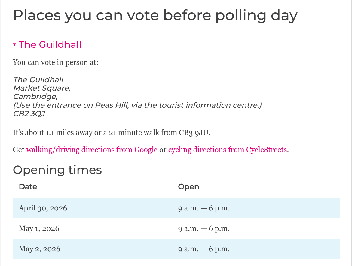 - Postal and proxy voting is still available in these areas. Apply for a postal vote by 5pm on 21 April 2026 or a proxy vote by 5pm on 28 April 2026.
